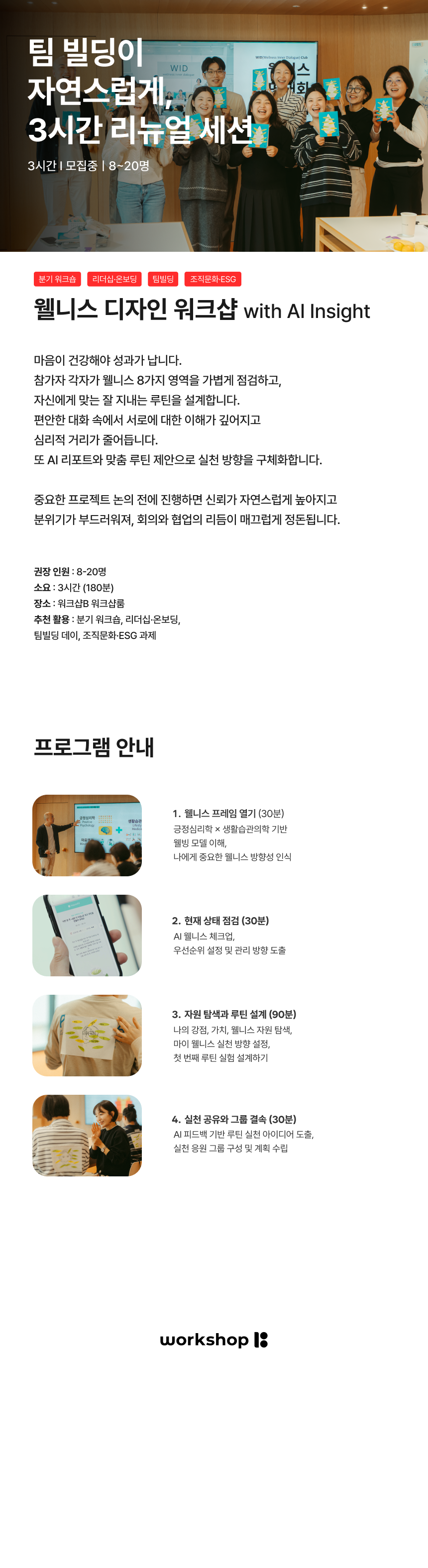웰니스 디자인 워크샵 (3시간) ㅣ 1팀당 (1명~20명 이내)